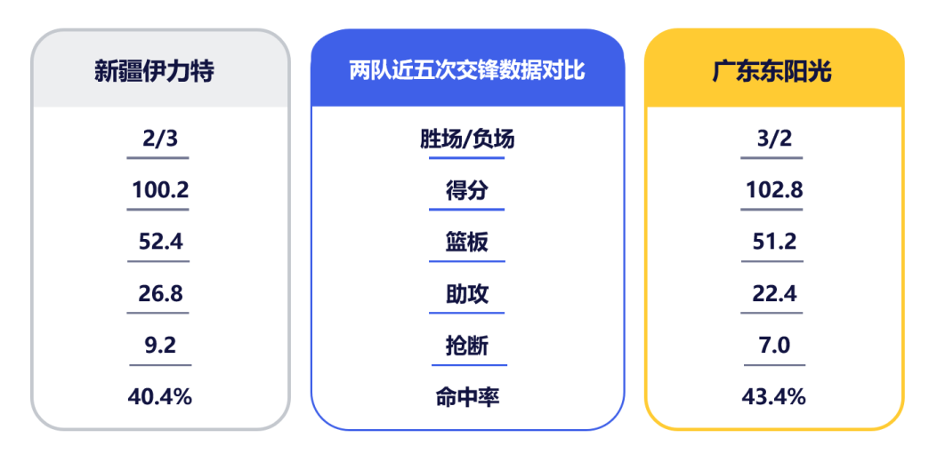 3月11日,CBA常规赛第24轮,广东东阳光将在客场挑战新疆伊力特男篮。双方上赛季共交手2次,华南虎保持全胜。
